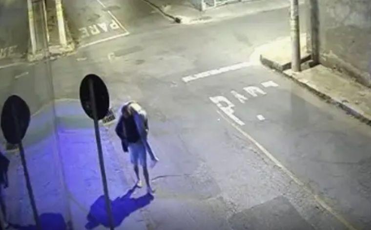 Instantes depois, um terceiro homem é visto andando pela rua onde a jovem foi deixada. Imagens de segurança mostraram o momento em que ele carrega a mulher nos ombros até um local afastado para estuprá-la.
