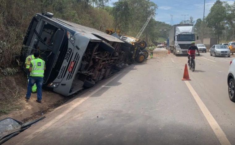 Segundo o Corpo de Bombeiros, o motorista do veículo de carga teria perdido o freio e atingido o coletivo que faz a linha estação Diamante, no Barreiro. Com o impacto da batida, o ônibus capotou.