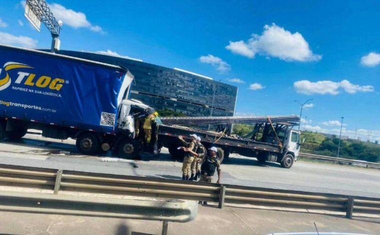 Um motorista de 49 anos morreu em um acidente envolvendo dois caminhões na manhã desta segunda-feira (8), na MG-010, em frente a Cidade Administrativa, na região Norte de Belo Horizonte.