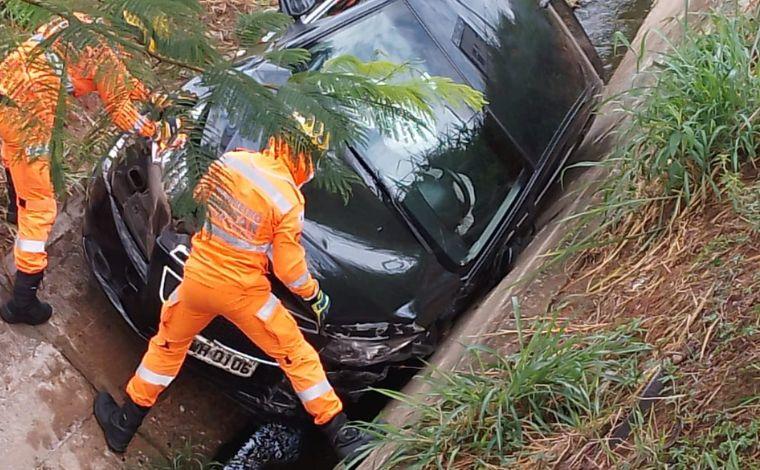 Um motorista precisou ser resgatado na manhã desta segunda-feira (2), após perder o controle do carro que ele dirigia e cair no córrego do Diogo, na Avenida Doutor Renato Azeredo, no bairro Canaã, em Sete Lagoas.