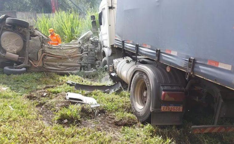 De acordo com o Corpo de Bombeiros, um caminhão perdeu o controle da direção e colidiu contra o carro da mulher. Ela era a única ocupante do veículo.