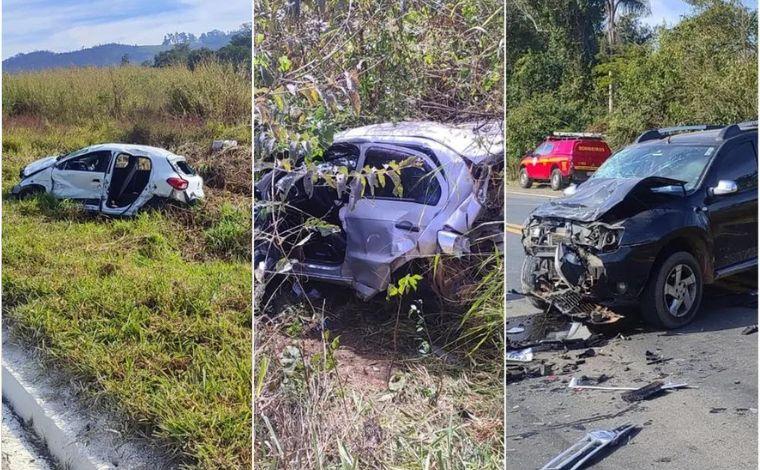 Uma mulher de 26 anos morreu e seis pessoas ficaram feridas depois de um acidente envolvendo três veículos na manhã deste domingo (25) na BR-146, próximo a Muzambinho, no Sul de Minas Gerais. Segundo informações do Corpo de Bombeiros, a vítima fatal estava em um carro Gol.