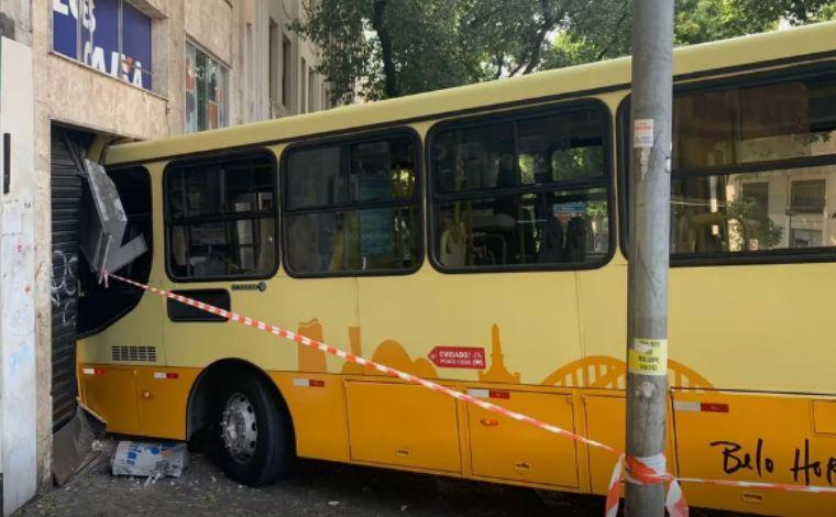 Um ônibus bateu em uma loteria do edifício Acaiaca, na esquina da rua dos Tamóios com a avenida Afonso Pena, no Centro de Belo Horizonte, na manhã desta quinta-feira (15). A menos 12 pessoas ficaram feridas.