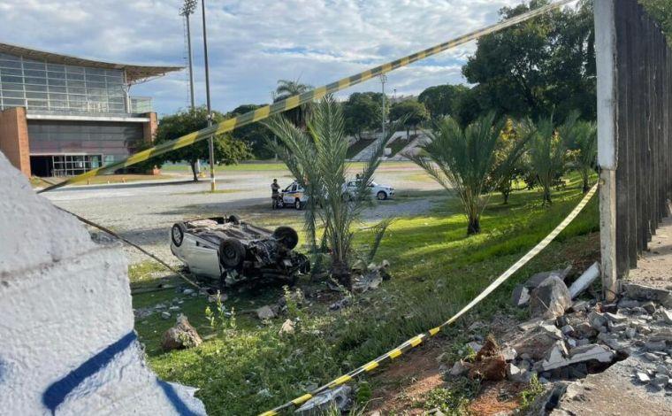 Alguns minutos depois, o porteiro do Centro de Treinamento Esportivo da UFMG (CEU) viu que o carro suspeito havia danificado o muro do centro de treinamento e capotou dentro da instituição.