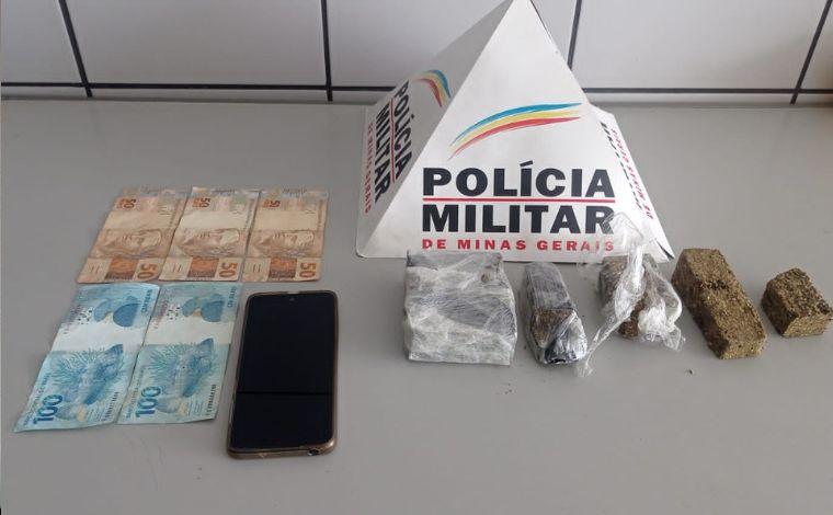 Com ele, a polícia encontrou meia barra e 4 tablets de maconha, além de R$ 350 e um aparelho celular.
