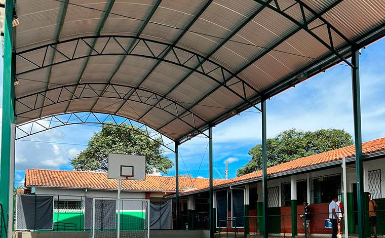 O deputado Douglas Melo visitou na tarde de hoje (17), a Escola Estadual Modestino Andrade Sobrinho, no bairro Progresso em Sete Lagoas para inaugurar a quadra coberta que foi construída através de emenda parlamentar do seu mandato, no no valor de R$ 120 mil reais. Douglas ressaltou que foi um pedido da direção em nome de todos os alunos e ele se comprometeu em destinar o recurso para a realização deste sonho antigo da comunidade escolar.