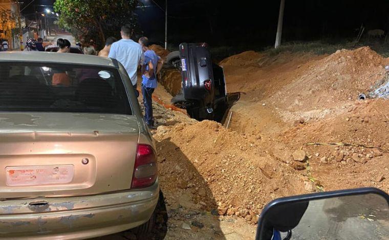 Uma caminhonete caiu em uma vala no canteiro de obras da Avenida Sabará, no bairro Interlagos, em Sete Lagoas, na noite desta quarta-feira (27). O acidente ocorreu onde estão sendo realizadas obras de drenagem pluvial e preparação para a nova pavimentação.