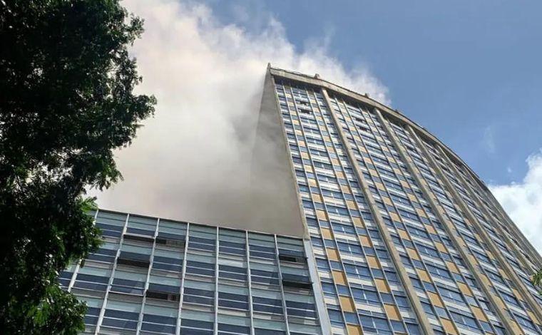 O Corpo de Bombeiros foi mobilizado para apagar um incêndio no antigo Othon Palace, na rua Bahia, esquina com a avenida Afonso Pena, no Centro de Belo Horizonte, no fim da manhã desta sexta-feira (24).