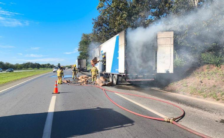 O Corpo de Bombeiros combateu um incêndio em uma carreta na manhã desta terça-feira (14), por volta das 8h, no Km 449 da BR-040, entre Sete Lagoas e Paraopeba.