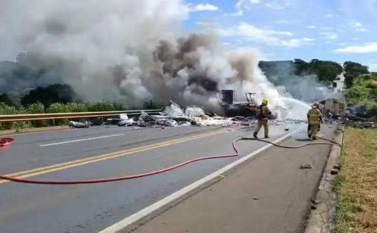 De acordo com informações iniciais do Corpo de Bombeiros, após o impacto, a cabine de um dos veículos explodiu e foi tomada pelo fogo. Além da vítima fatal, outra pessoa ficou presa às ferragens e aguarda atendimento das equipes no local.