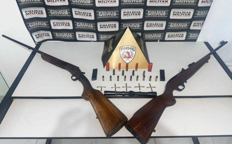 As equipes realizaram buscas na região, porém o suspeito não foi localizado. Durante a ação, duas espingardas e munições foram encontradas em um dos cômodos da residência.