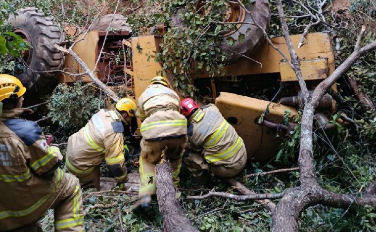 De acordo com a corporação, a máquina tombou na margem de uma estrada rural, despencou de um desnível de aproximadamente 18 metros e parou de forma invertida no interior de uma grota. A vítima foi encontrada pelos militares já sem vida, presa às ferragens e sob a estrutura do equipamento.