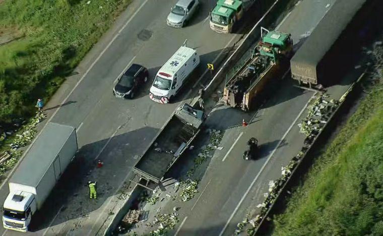 De acordo com a Autopista Fernão Dias, concessionária responsável pela administração da via, o motorista não sofreu ferimentos. O tombamento ocorreu após o veículo colidir contra a mureta de proteção central, o que resultou no espalhamento da carga sobre a pista.