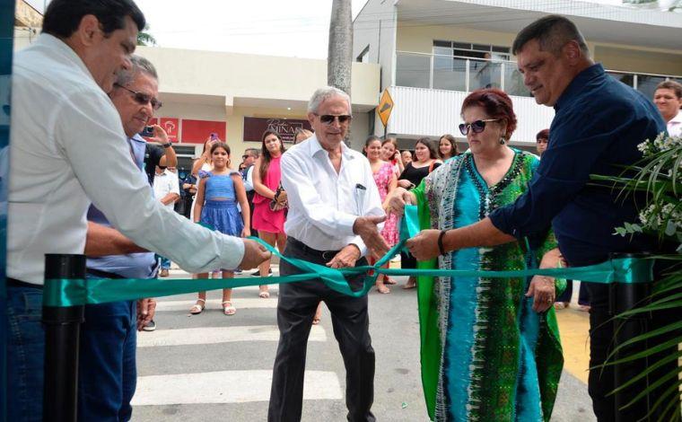 Leonardo Chaves Costa, presidente do Conselho de Administração do Sicoob Credisete e familiares do Dr. Geraldo Machado no momento da inauguração