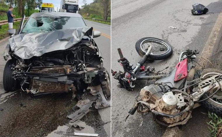 De acordo com a Polícia Rodoviária Federal (PRF), o acidente ocorreu no km 687 da rodovia. O motociclista seguia sentido Belo Horizonte, quando atravessou a pista, invadiu a contramão e bateu de frente com um carro que vinha no sentido contrário. Com o impacto da batida, a moto partiu ao meio. O condutor morreu no local.