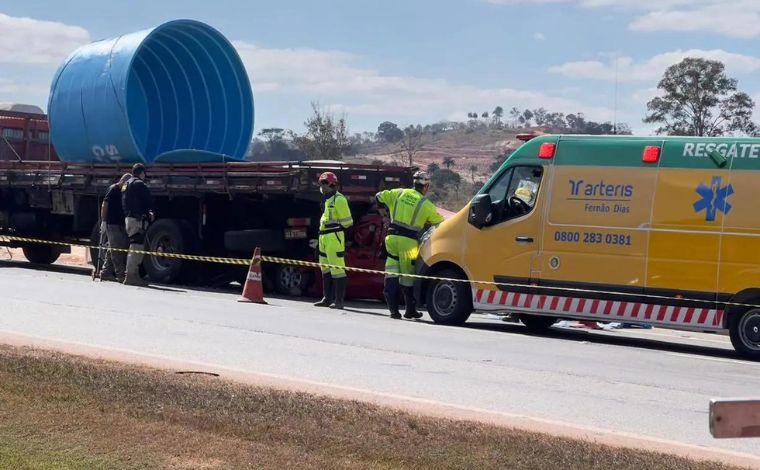 Uma pessoa morreu em um grave acidente envolvendo um carro e um caminhão, na manhã desta terça-feira (26), na BR-381, em Betim, na região metropolitana de Belo Horizonte. O acidente aconteceu na altura do Km 2, por volta das 9h55, próximo ao Shopping Partage, na alça norte da rodovia.
