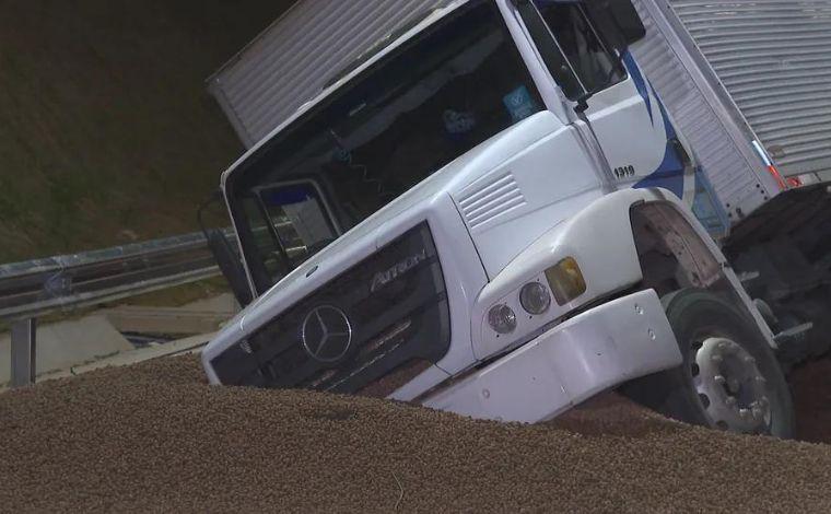 De acordo com a Polícia Militar Rodoviária (PMRv), o motorista disse que o caminhão perdeu os freios e para não atingir veículos de pequeno porte entrou na área de segurança. Ninguém se feriu. A carga foi retirada e passada para outro veículo por volta de 2h.