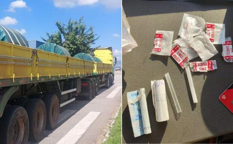 O material encontrado foi entregue à Polícia Judiciária e o veículo encontra-se à disposição da empresa na unidade PRF de Betim.