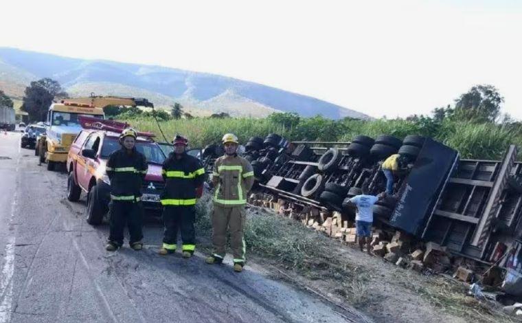 Uma carreta carregada com biscoitos tombou na BR-116, próximo a Itaobim, no Vale do Jequitinhonha. O veículo foi encontrado pela polícia tombado em um barranco de aproximadamente dois metros de altura. Dois homens foram encontrados presos às ferragens da carreta e um deles já estava morto. O acidente aconteceu neste sábado pela manhã (15/4).