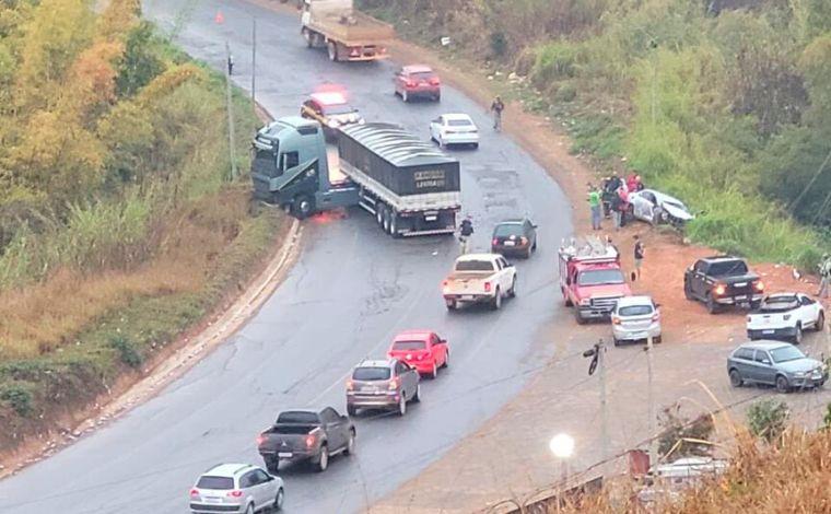 Duas pessoas foram socorridas em estado grave após uma batida frontal entre um carro e uma carreta na BR-262, em Manhuaçu, na Zona da Mata mineira, na manhã desta sexta-feira (16). As vítimas eram ocupantes do veículo de passeio e foram socorridas para um hospital da região.