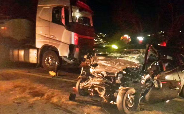 Um casal morreu e a filha deles, de 14 anos, ficou gravemente ferida em um acidente na noite de domingo (3) na BR-491, em Elói Mendes, no Sul de Minas. A fatalidade aconteceu por volta das 23h, quando o carro em que a família viajava colidiu frontalmente com uma carreta. Com o impacto da batida, o condutor, de 49 anos, e sua esposa, de 48, ficaram preso às ferragens e morreram no local.