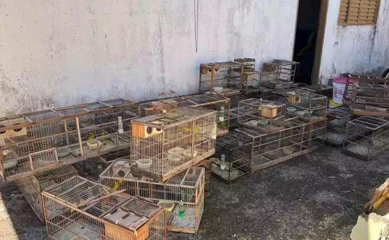 Por meio de fiscalização, os militares chegaram até a casa em que estavam 109 canários-da-terra. Além dos pássaros, foram localizadas e apreendidas 37 gaiolas e um alçapão.