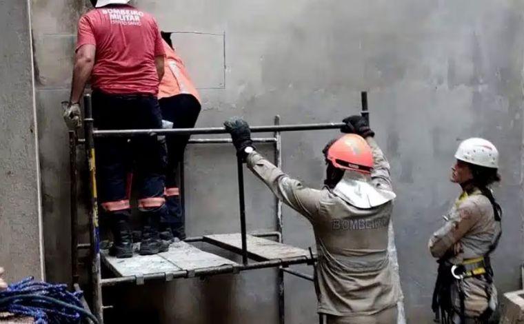 O Corpo de Bombeiros foi acionado para o resgate da jovem em um local de difícil acesso. Após análise do ambiente, as equipes constataram que a vítima estava em uma fenda estreita, com cerca de 40 cm de largura, entre um barranco e uma casa de alvenaria. Com o uso de uma escada e uma descida de aproximadamente 10 metros, os bombeiros quebraram uma parede e conseguiram chegar até a jovem, que estava consciente, porém assustada.