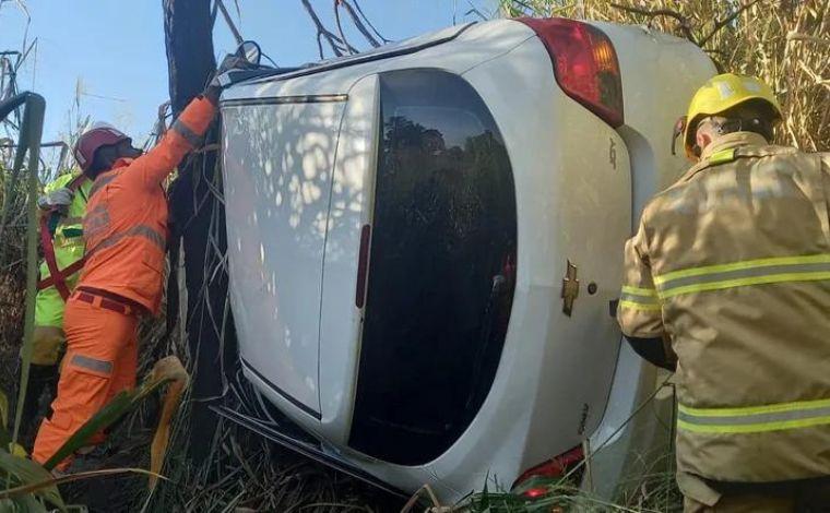 Um motorista ficou preso às ferragens após o carro que ele dirigia capotar e cair em uma ribanceira na BR-040, em Três Marias. A ocorrência foi registrada neste sábado (13), na altura do KM 281 da rodovia.