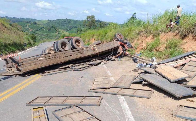Um acidente na BR-146, no Sul de Minas, na tarde de domingo (7), resultou na morte do motorista de um caminhão. O veículo capotou em uma curva, conhecida como "Serrinha", e a carga de estruturas de madeira e ferragens para rodeio se espalhou na pista.
