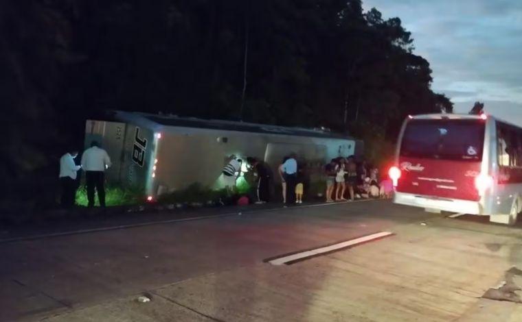 Um ônibus de turismo que saiu de Juiz de Fora, na Zona da Mata, em Minas Gerais, tombou na BR-040, altura do km 87, na descida da Serra de Petrópolis, na madrugada deste domingo (29). Conforme a Concer, concessionária que administra o trecho, 26 passageiros ficaram feridos; 55 pessoas estavam no coletivo.