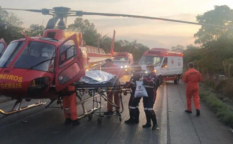 O motorista da caminhonete, de 67 anos, foi socorrido para uma unidade de saúde pela equipe do helicóptero Arcanjo 03 do Corpo de Bombeiros Militar/SAMU.