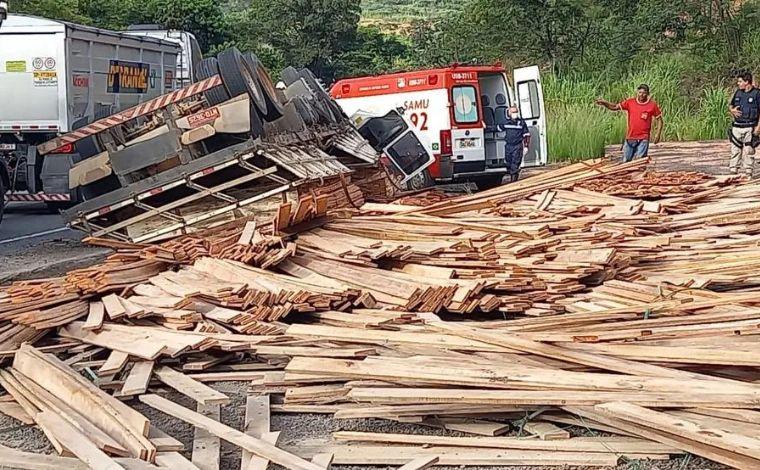 Na BR-381, sentido Belo Horizonte, próximo ao km 433, uma carreta com madeira tombou na pista, na manhã desta quinta-feira. O condutor foi atendido por uma equipe do Serviço de Atendimento Móvel de Urgência (Samu) se queixando de dores em uma das pernas e no peito. Ele foi encaminhado a um hospital de Caeté.