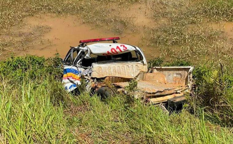 Um caminhão desgovernado colidiu com três veículos, incluindo uma viatura da Polícia Militar (PM) que estava atendendo a outro acidente na altura do Km 244 da BR-356, em Muriaé, região da Zona da Mata mineira, nessa quarta-feira (22).