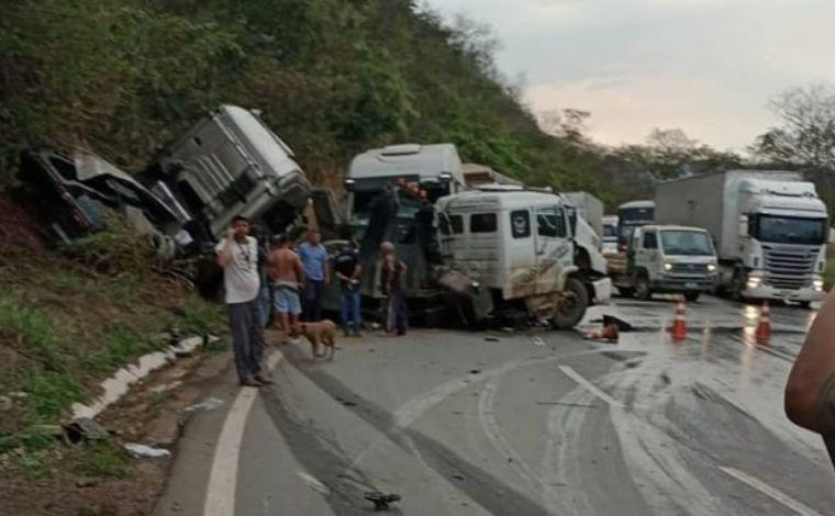 Uma colisão envolvendo várias carretas na BR-381, em Caeté, na região metropolitana de Belo Horizonte, no sentido Vitória, deixou uma pessoa ferida na tarde desta terça-feira (5). O acidente aconteceu na altura do Km 430 e ambas as pistas da rodovia estão completamente interditadas.