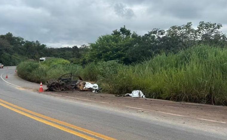 A Polícia Rodoviária Federal (PRF) informou que houve uma colisão frontal entre os dois veículos. Após o impacto, o caminhão deixou a pista e parou em uma área de vegetação às margens da rodovia. O carro ficou completamente destruído e chegou a ser partido ao meio.