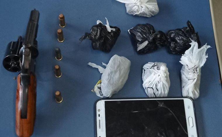 No interior da residência foram localizadas 07 porções de maconha e 01 revólver calibre .38 com numeração suprimida, carregado com cinco munições.