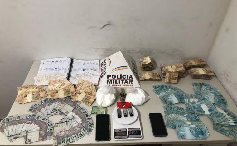 Já no imóvel, onde estavam a mulher e o filho do foragido, a polícia encontrou em cima de uma mesa de vários blocos de dinheiro separados, caderno de contabilidade com valores significativos para nomes diferentes e vários extratos bancários, além de balança de precisão, duas sacolas com cocaína e dois celulares. Na casa, o dinheiro encontrado foi R$ 53.480.