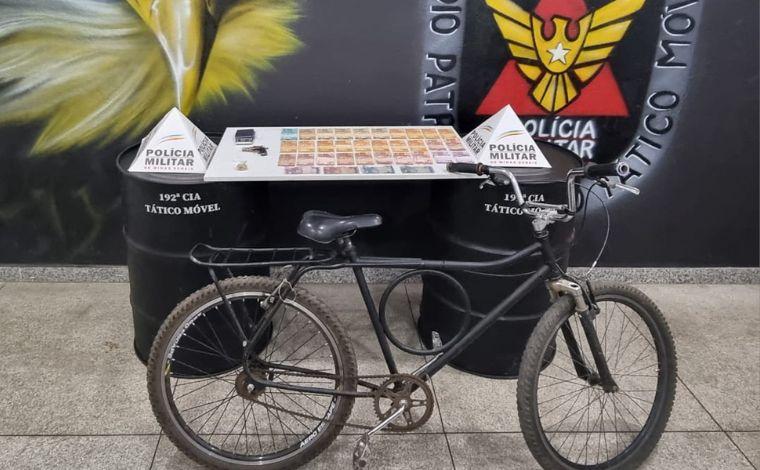Ao se aproximarem, os militares avistaram um indivíduo chegando ao local em uma bicicleta idêntica àquela utilizada no roubo. Ao dar ordem de parada, o suspeito tentou empreender fuga, mas foi rapidamente alcançado e detido pela PM. Em contato com a vítima do roubo, esta prontamente reconheceu tanto a bicicleta quanto um simulacro de arma de fogo encontrados em posse do suspeito.