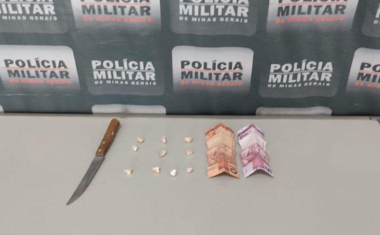Em revista pessoal, foram encontrados com ele 10 pedras de crack, 1 faca e R$ 15 em espécie.