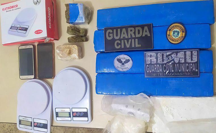 A GCM apreendeu quatro barras de substância semelhante à maconha, um tablete prensado menor e dois tabletes de substância semelhante à maconha, um tablete prensado de substância semelhante à crack, três invólucros plásticos contendo quantidade considerável de substância semelhante à cocaína (inclusive um com identificação de origem "cartel"), um tablete de substância não indefinida de cor branca prensada, duas balanças de precisão, dois aparelhos celular e duas porções pequenas semelhantes à cocaína.
