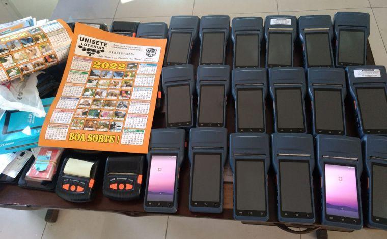 No local também foi encontrado dinheiro, malotes para guarda de dinheiro, anotações referentes a apostas e outros equipamentos eletrônicos.