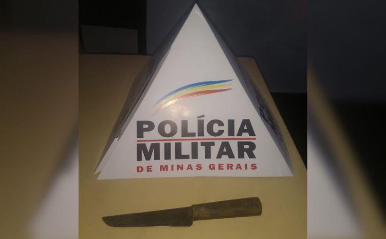 Durante a busca pessoal, foi encontrada uma faca em sua posse. Ao verificar seus antecedentes criminais, constatou-se também a existência de um mandado de prisão em aberto, relacionado a crimes de furto.