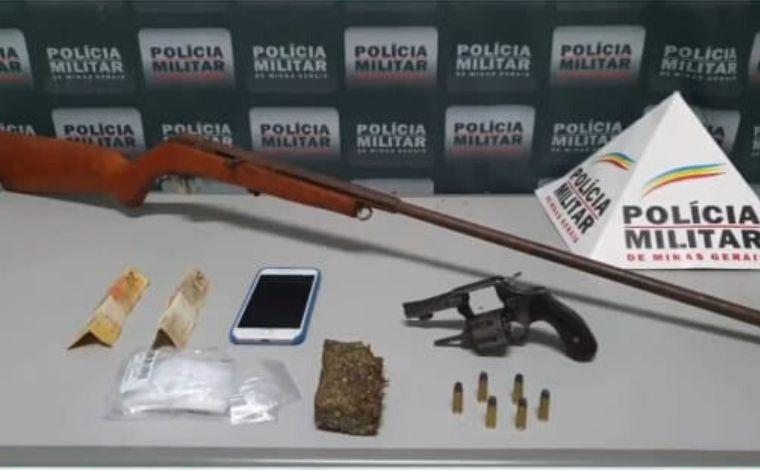 De acordo com Polícia Militar (PM), após encontrar arma e munições no bolso do suspeito, os militares realizaram outras diligências que resultaram na apreensão de uma espingarda tipo polveira, uma barra de maconha prensada, sacos para dolagem, 6 munições intactas calibre 32, além de um aparelho celular e R$ 70 em espécie.