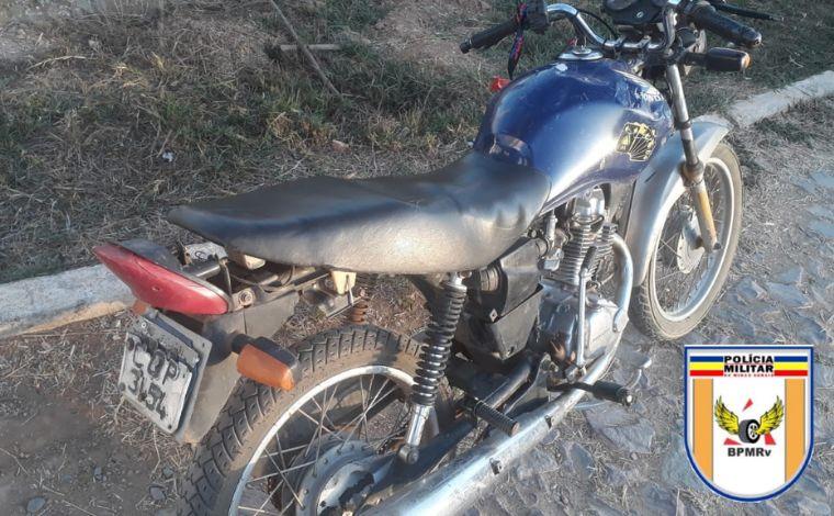 Uma motocicleta com a placa adulterada foi apreendida na região de Baldim, nesta segunda-feira (6). Segundo a Polícia Militar (PM), o veículo também estava com o chassi cortado. Uma pessoa foi presa.