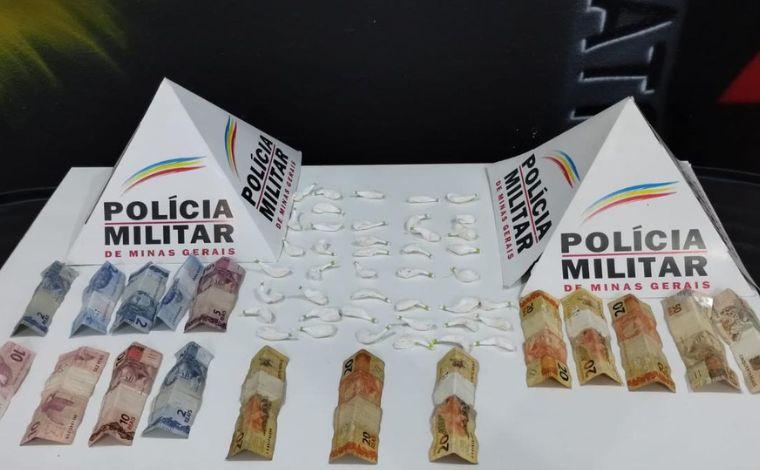 Os militares iniciaram o acompanhamento e conseguiram abordar o automóvel em uma rua do bairro do Carmo. Durante a busca no carro, os policiais encontraram 43 petecas de cocaína, um aparelho celular e R$ 265 em dinheiro.