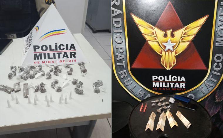 Os militares apreenderam 39 invólucros e 03 tabletes de maconha, 13 micro tubos contendo de cocaína, além de um aparelho celular e R$6,10. Os suspeitos possuem diversas passagens criminais e são alvos do município de Capim Branco.