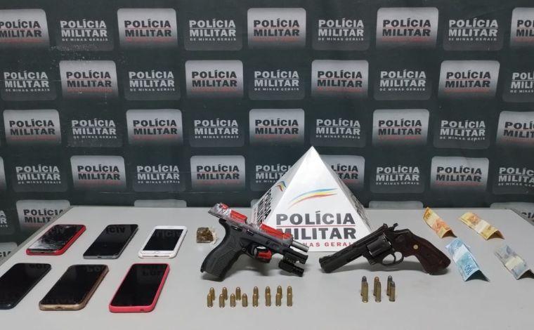 Durante a abordagem, os militares encontraram dois homens com duas armas de fogo, sendo uma pistola PT 92 com mecanismo de mira a laser e uma pistola Taurus 380. Também foram apreendidas 15 munições calibre 380 e seis munições calibre 38. Além disso, os policiais encontraram seis aparelhos celulares, R$ 142,00 em dinheiro, um tablete de maconha. Dois menores também foram apreendidos no local.