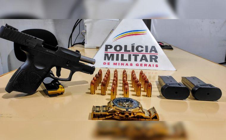 A Polícia Militar (PM) apreendeu uma pistola modelo G2c calibre 9mm, 32 cartuchos de munição 9mm intactos, três carregadores e um relógio, na Rua Lamartine Babo, no bairro Brasília, em Sete Lagoas. A ocorrência foi registrada no último sábado (1º).
