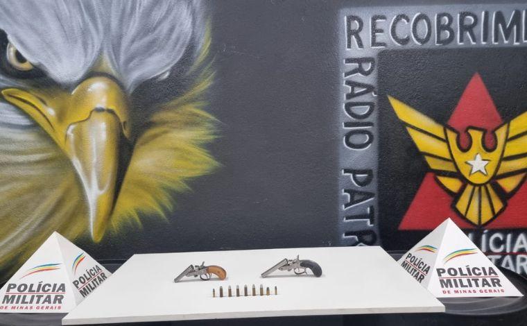 Após várias abordagens em locais estratégicos, a polícia recebeu informações de um colaborador dando conta de um local que teria armas de fogo e munições de forma irregular. De posse da denúncia, a polícia realizou uma intervenção tática no local e logrou êxito na apreensão de duas armas de fogo, uma garrucha calibre 32 e uma garrucha calibre 22, bem como sete munições calibre 32 e duas munições calibre 22.