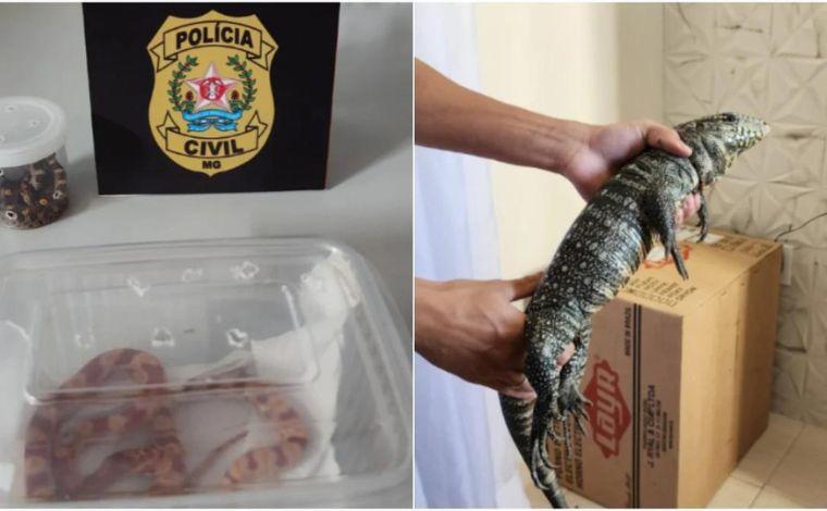 Três jovens de 19 anos foram autuados pela Polícia Civil de Minas Gerais por enviarem animais silvestres exóticos pelos Correios, em Lavras, no Sul de Minas. A ação, realizada na quarta-feira (15), resultou na apreensão de duas cobras-de-milho e um lagarto teiú que estavam prontos para serem enviados.